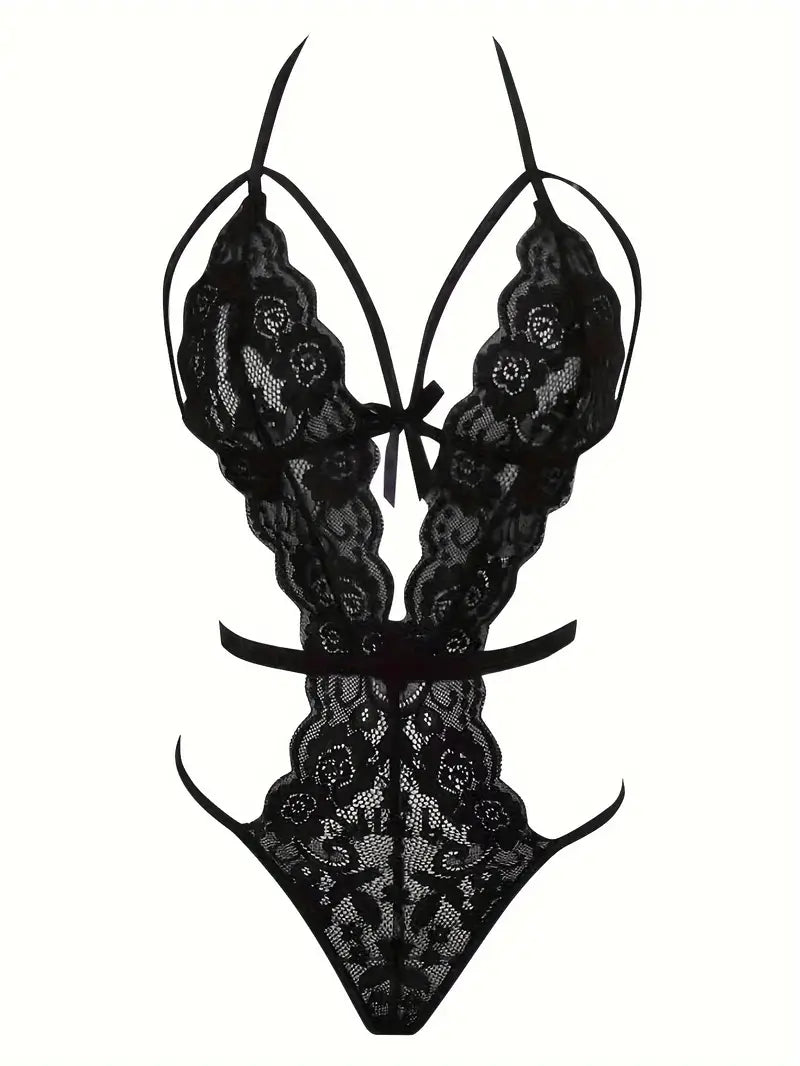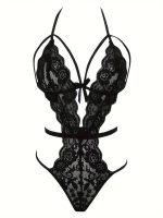 Teddy Met Halterbandjes Met Bloemenkant, Uitgesneden Diepe V-backless Stringbodysuit, Sexy Dameslingerie En Ondergoed