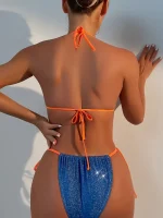 Glinsterende Bikini Set Met Contrasterende Bandjes, Verstelbare Striktop En Zijstrikbroekjes, Tweedelige Badkleding